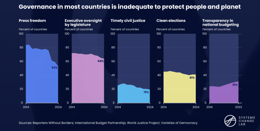A new data set on governance from the Systems Change Lab. The steep global decline in press freedom is notable.