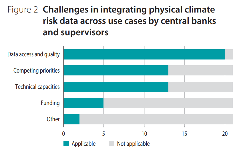 Speaking of the measure-to-manage paradigm, the Network of central banks and financial supervisors for Greening the Financial System (NGFS) has released a new report on climate risk data. A survey of NGFS members across all continents finds the greatest challenge is data access and quality.