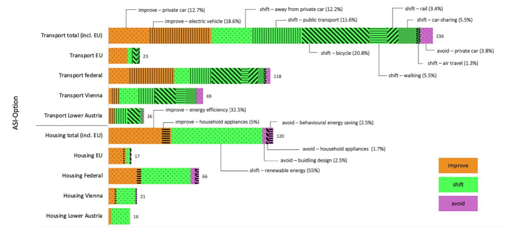 New analysis by Brad et al. (2025) on demand-side options in policy mixes. The literature on demand-side policy is growing, but this paper is notable for its assessment of actual policy implementation. With an analysis of 356 demand-side measures (!) in the EU and Austria, the paper shows that existing demand-side policy is stuck on improving and shifting consumption (orange and green in the bar chart below), but neglects avoiding consumption (purple).
