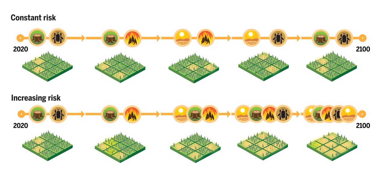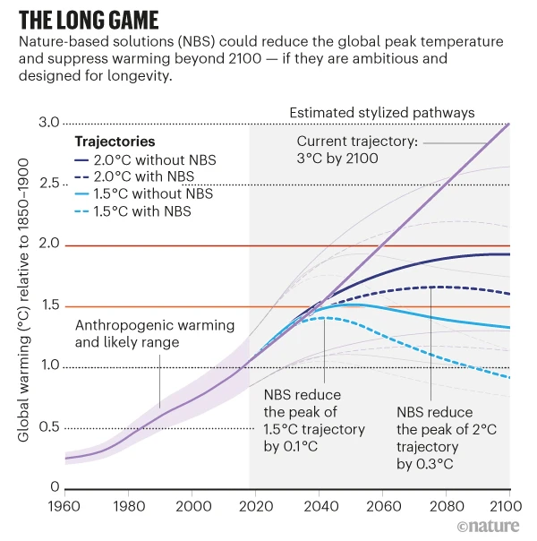 - Secondly, if global gross emissions are not reduced, the mitigation benefits of biological removals cannot be realized, because the climate-related risks of carbon reversal will increase. A recent modelling exercise of net-zero mitigation pathways showed that biogenic sinks like forests can reduce the magnitude and duration of the temperature peak, but only if global gross emissions are also simultaneously reducing (Matthews et al. 2022).