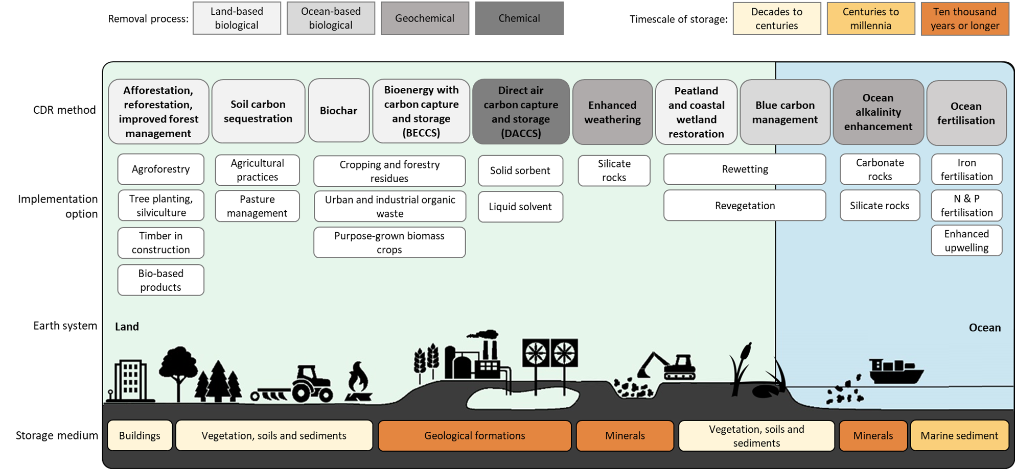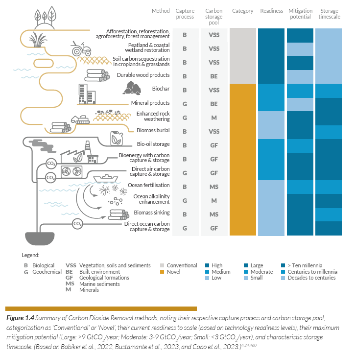 - 4.7.2. Meet the implied future demand for durable storage by scaling up permanent removals technologies, such as direct air carbon capture (DACC), biochar with carbon removal, and enhanced rock weathering (see figure below). This will require importing technologies and practices from overseas, but also supporting domestic research, development and deployment (RD&D) to stimulate innovation and overcome market barriers for permanent removals (Smith et al. 2024, chs. 2 & 3).